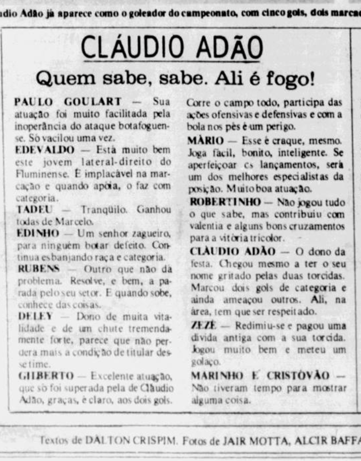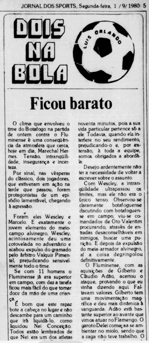 No primeiro clássico do Campeonato Carioca de 1980, há 45 anos, o Fluminense massacrou o Botafogo no Maracanã, deu o troco da derrota no ano anterior e começou a escalada do título tricolor daquele ano. O Fluminense jogava com um time quase todo da base, que deixou muita saudade.