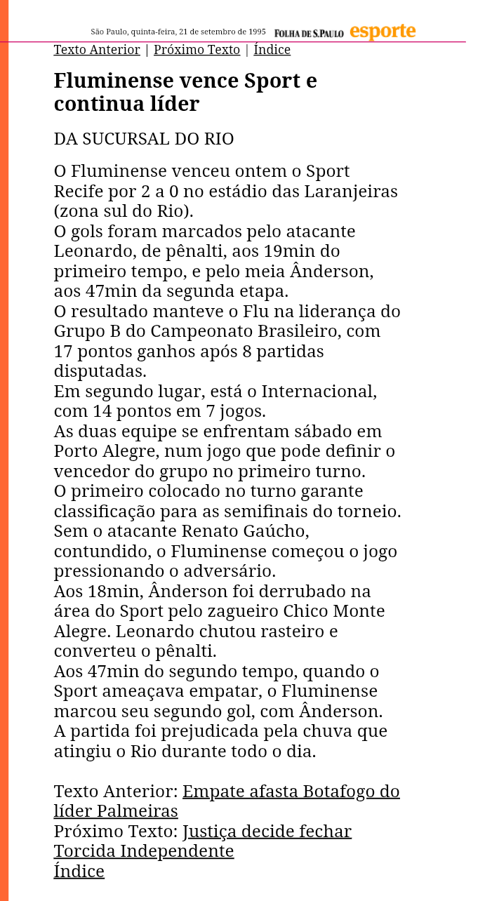 Flu x Sport, há 30 anos (da Redação) As notas da Redação | 01/10/2025 Em setembro de 1995, o Fluminense recebeu o Sport nas Laranjeiras em note de muita chuva. Fazendo boa campanha no Brasileirão, o Tricolor venceu por 2 a 0. Registro da Folha de São Paulo. fluminenseLaranjeirasSport Comentário CancelarName* Email* Website Seu comentário Δ